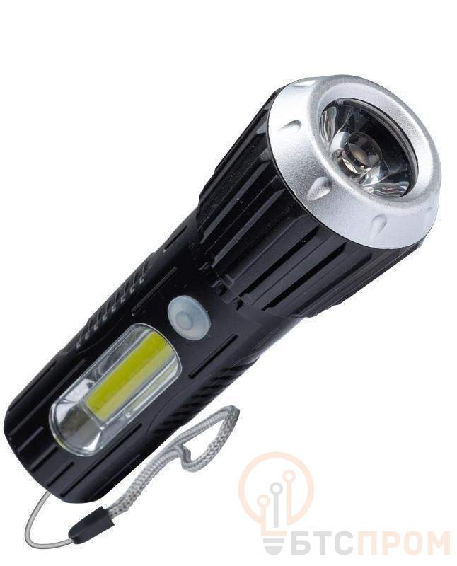Фонарь аккумуляторный ручной LED 1Вт + COB 2Вт коллим линза аккум. Li-ion 18650 1А.ч USB-шнур ABS-пластик КОСМОС KOS114Lit