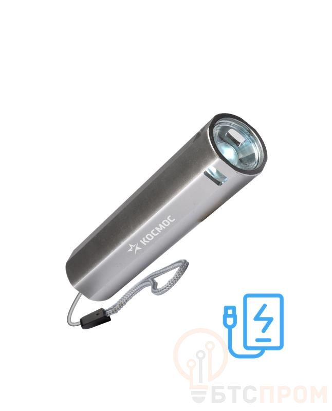 Фонарь аккумуляторный ручной LED 1Вт линза аккум. Li-ion 18650 1.2А.ч Power-bank USB-шнур ABS-пластик КОСМОС KOS116Lit