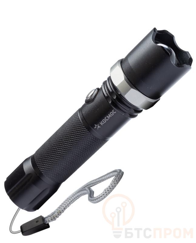 Фонарь аккумуляторный ручной LED 3Вт линза зум аккум. Li-ion 18650 1.2А.ч USB-шнур анодир. алюм. КОСМОС KOS112Lit