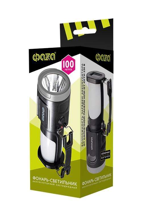 Фонарь аккумуляторный универсальный AccuF8-L1W/L24-bk 1Вт 83лм + боков. панель 24х0.1Вт 132лм аккум. 0.9А.ч ЗУ: сеть/солнечн. панель IP20 черн. ФАZА 5006669
