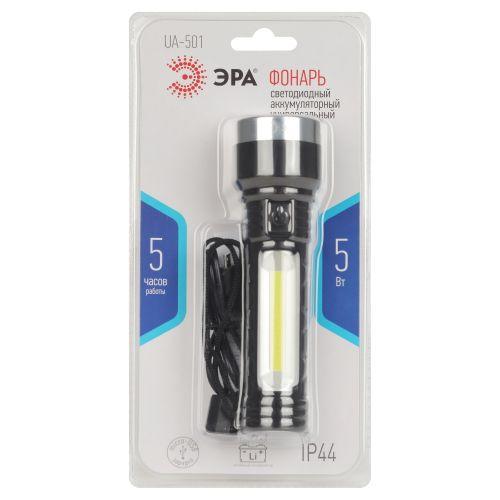 ЭРА UA-501 универсальный светодиодный фонарь, работающий от встроенного аккумулятора. Одной подзарядки хватает на 5 часов непрерывного свечения. Корпус из прочного пластика и мягкой резины. Имеет защиту от влаги и пыли (IP44). Выпускается в современной блистерной упаковке.