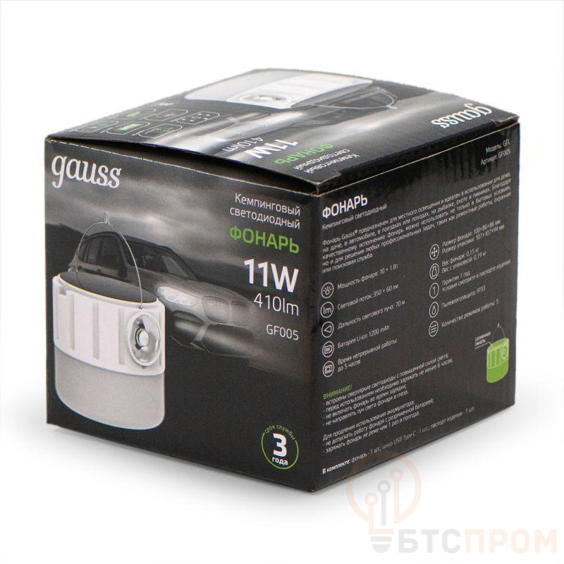 Фонарь аккумуляторный кемпинговый GFL005 11Вт 410лм Li-ion 1200мА.ч Solar LED GAUSS GF005 фото в каталоге от BTSprom.by