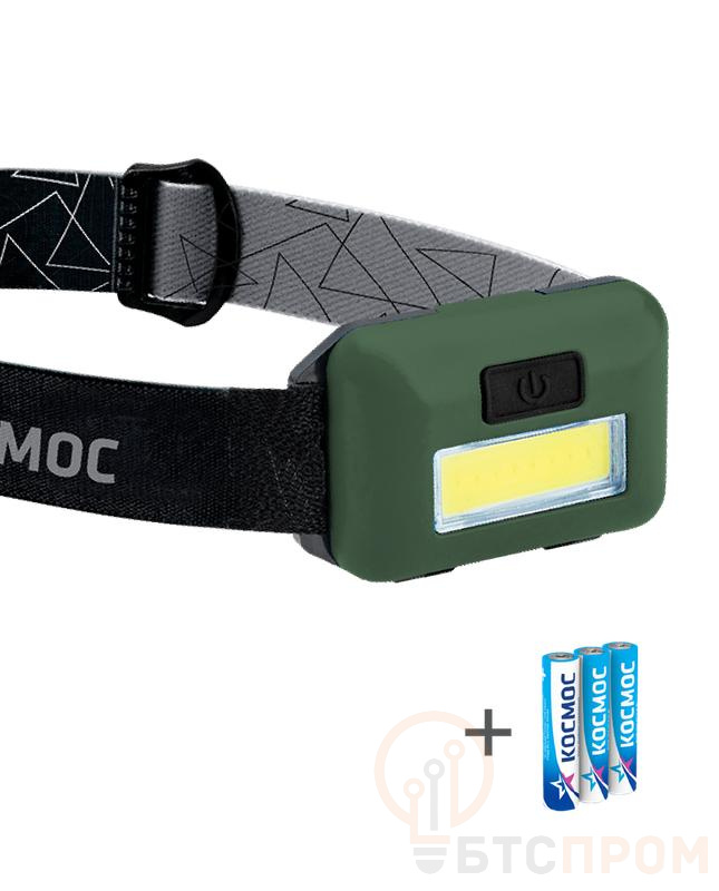 Фонарь налобный 3Вт COB LED 3xAAA (R03) корпус ABS-пластик регулируемый эласт. ремешок КОСМОС KOC520B
