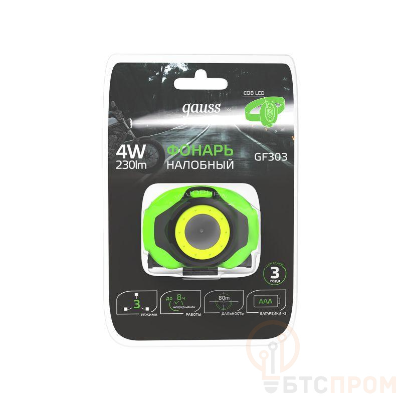 Фонарь налобный GFL 4Вт 230лм IP42 элементы питания 3хAAA GAUSS GF303 фото в каталоге от BTSprom.by