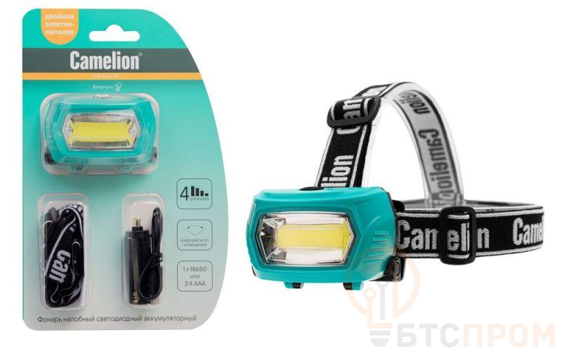 Фонарь налобный LED53411 аккум. 3.7В COB 3Вт 3 реж. 3 x AAA Type-C блист зел. Camelion 15763 фото в каталоге от BTSprom.by