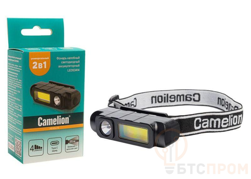 Фонарь налобный LED53414 аккум. 3.7В XPE+COB 3Вт 4 реж. Type-C бокс черн. Camelion 15766 фото в каталоге от BTSprom.by