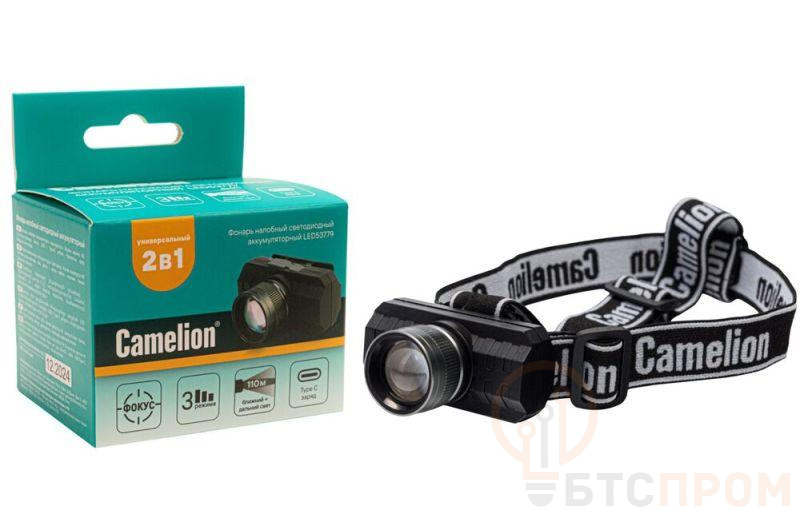 Фонарь налобный LED53779 аккум. 3.7В XPE 3Вт ZOOM 3 реж. Type-C бокс черн. Camelion 15767 фото в каталоге от BTSprom.by