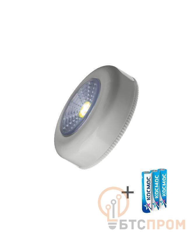 Фонарь-подсветка 1Вт COB LED 3xAAA (R03) корпус ABS-пластик сер. самокл. поверхность в комплекте двустор. скотч КОСМОС KOC307B