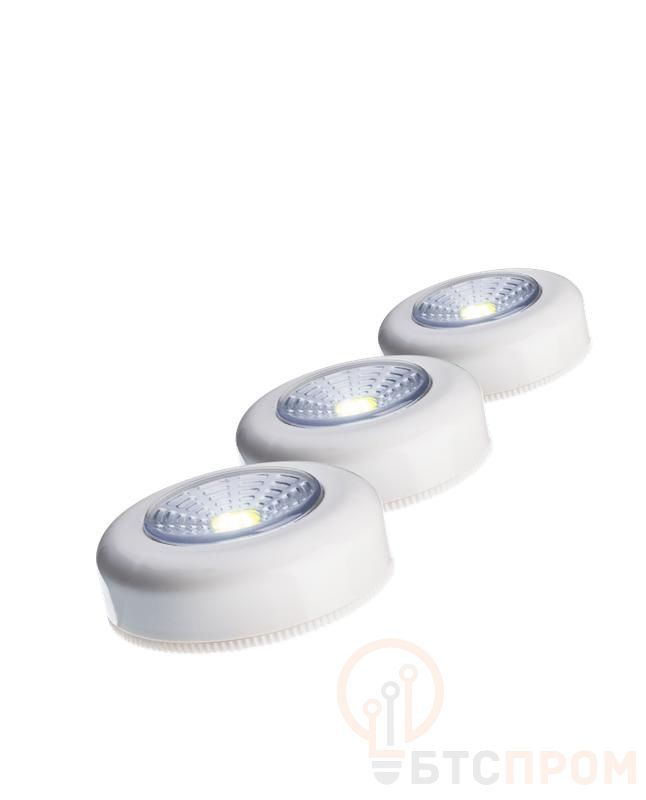 Фонарь подсветка 1ВтCOBLED 3xAAA корпус ABS-пластик самоклеящийся (уп.3шт) КОСМОС KOC304B