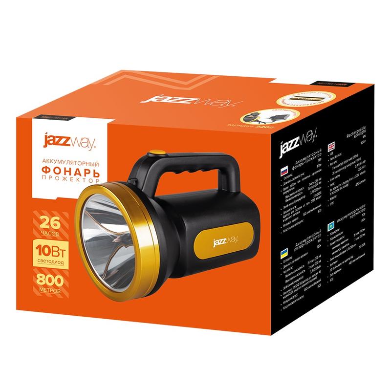 Фонарь-прожектор аккумуляторный Accu7-L10W 10Вт IP20 350лм (7ч)/100лм (26ч) аккум. 3.7В Li-Ion 7.2А.ч дальность луча 800м JazzWay 5030701