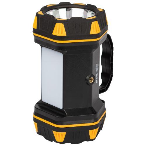 ЭРА «Практик» PA-808 – многофункциональный прожекторный фонарь с ёмким литиевым аккумулятором. Имеет множество режимов свечения: основной свет (100% яркости и 50% яркости), боковой свет (100% яркости и 50% яркости), свет с обратной стороны (100% яркости, 50% яркости, красный свет, красный мигающий). Всего – 65 светодиодов для создания яркой практичной подсветки. Этот современный фонарь имеет различные крепления и поможет организовать качественное портативное освещение в любой ситуации. Предусмотрено гнездо под штатив. Ещё одно преимущество – возможность использовать фонарь ЭРА PA-808 в качестве пауэрбанка для оперативной подзарядки мобильных устройств. Сам фонарь удобно заряжается при помощи кабеля microUSB и непрерывно светит от одного полного заряда до 15 часов. Имеется индикатор заряда