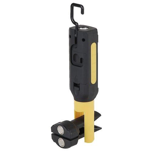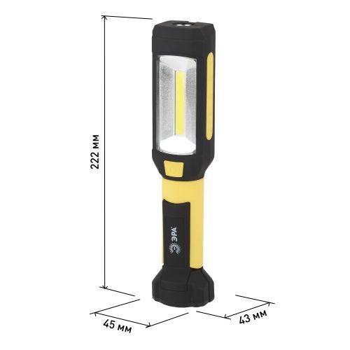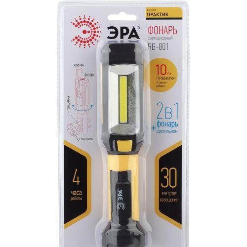 ЭРА Практик RB-801 - многофункциональный светодиодный фонарь с режимом светильника и двумя типами крепления. Корпус сгибается в двух направлениях (по 90 градусов каждое). На торце - мощный магнит. Дополнительный магнит расположен на задней стороне фонаря. Имеется удобный прочный крючок. Закрепив ЭРА RB-704 на нужной поверхности, можно быстро настроить необходимый для работы угол освещения. Переключение режима превращает фонарь в светильник c ближним заливающим светом. Фонарь ЭРА Практик RB-801 незаменим как при профессиональных работах (строительство, ремонт, монтаж, обслуживание), так и в частном использовании (работы в доме, на приусадебном участке, путешествия). Покрытие корпуса - софт-тач (мягкое, приятное на ощупь, без скольжения). Основной режим освещения - яркая LED-плата СОВ (5 Вт). Сопутствующий - 3 диода на торце с направленным лучом длиной до 20 метров. Сверхмощные светодиоды COB ("chip on board" - "кристалл на плате") ранее применяли исключительно в промышленном освещении, сейчас технологию удалось адаптировать под универсальные цели. Получился яркий и при этом мягкий ровный свет. Одного комплекта батареек (3 мизинчиковые) хватит на 12 часов непрерывной работы.