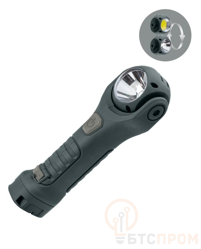Фонарь-светильник аккумуляторный 3Вт LED+4Вт COB LED+красн. съемный Li-ion 18650 1200мА.ч корпус ABS-пластик USB-шнур поворот. механизм источников света магнит на корпусе складная металл. ручка для подвеш. КОСМОС KOC705Lit