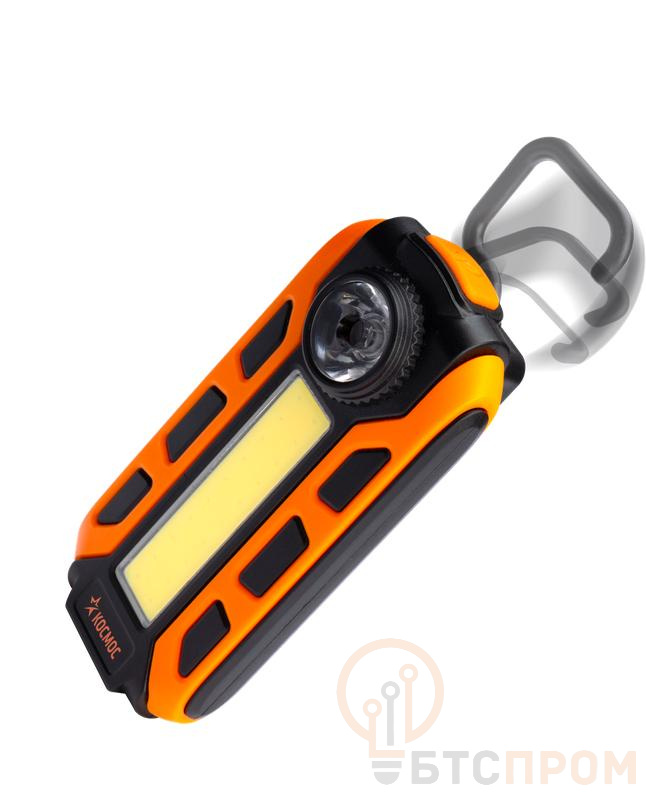 Фонарь-светильник рабочий COB 5Вт + LED 1Вт коллиматорн. линза 3хAAA магнит крюк зажим ABS-пластик КОСМОС KOS703B