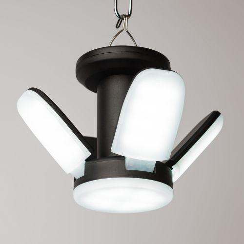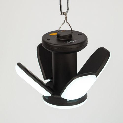 ЭРА КА-802 «Комета» - компактный и лёгкий фонарь-светильник линейки кемпинговых фонарей торговой марки ЭРА. Новый светодиодный фонарь имеет конструкцию трансформера и позволяет организовать полноценное походное освещение на привале. Угол наклона каждого из 4 светодиодных модулей можно регулировать, качественно подсвечивая определённые зоны пространства. В полураскрытом варианте, делающем LED-фонарь похожим на комету, ЭРА КА-802 формирует широкое заливающее освещение, в раскрытом – более направленную яркую подсветку. Вариант со сложенными светодиодными модулями – это уютный настольный светильник для кемпинга. Данный аккумуляторный LED-фонарь изготовлен из лёгкого прочного пластика, что делает его оптимальным решением для похода. Для подвешивания на палатку, тент или ветку имеется надёжный металлический крючок. Множество режимов работы: 1 - максимально яркое свечение лепестков, 2 - приглушённое свечение лепестков, 3 – яркое свечение центральной лампы, 4 – приглушённое свечение центра, 5 – свечение всех LED-элементов, 6 – аварийное мигание. От одной полной подзарядки непрерывно светит до 14 часов.