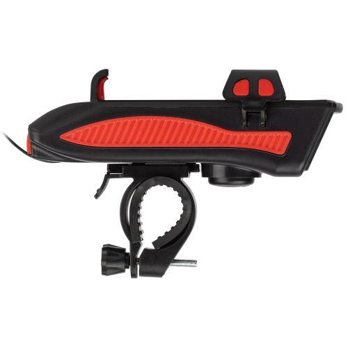 ЭРА VA-802 – многофункциональный светодиодный велосипедный фонарь. Объединяет в себе функции фонаря, пауэрбанка, держателя для телефона и велосипедного звонка. Фонарь-звонок ЭРА для велосипеда имеет 3 режима свечения: 100% яркости, 50% яркости и аварийное стробирование. Велосипедный фонарик, оснащённый креплением для телефона – удобное устройство, благодаря которому мобильный телефон с онлайн-картами всегда будет перед глазами, при этом руки велосипедиста свободны. Громкий звуковой сигнал звонка, встроенного в данный фонарь велосипедный, поможет избежать аварийных ситуаций и сделает передвижение по городу комфортным. Этот велофонарь мощностью 5 Вт создаёт световой поток 335 Лм и формирует световой луч дальностью до 85 метров. Велосипедный фонарь ЭРА VA-802 можно использовать как powerbank для подзарядки мобильных устройств. Аккумуляторный тип фонаря позволяет забыть о покупке батареек. Литиевый аккумулятор мощностью 2400 мАч полностью заряжается за 3 часа и работает без перерыва до 8 часов, чего хватит даже для длительных велопрогулок в тёмное время суток.
