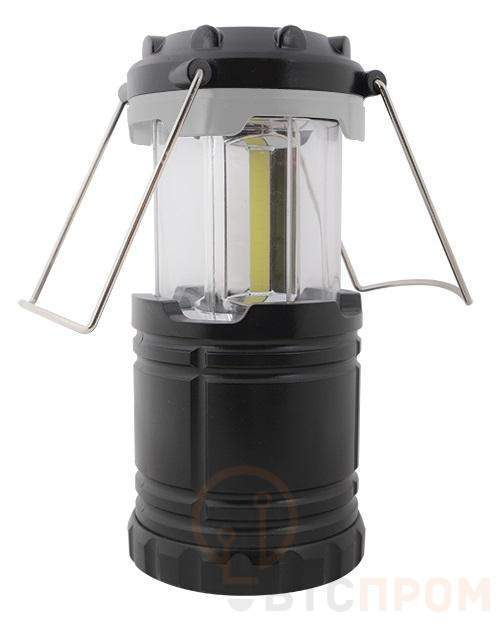 Кемпинговый фонарь с SOFT TOUCH покрытием. Складной механизм. 1 Вт СОВ светодиод 150 люмен. Тип батареи 3хААА.