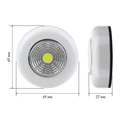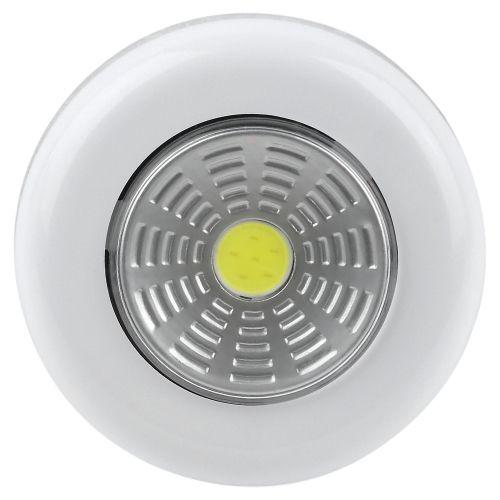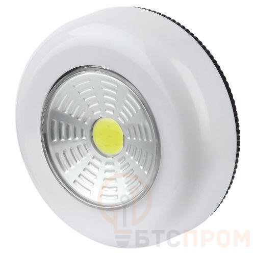 Компактный фонарь-пушлайт ТРОФИ SB-101 (артикул Б0052747) — отличный вариант бытовой подсветки. Монтируется на поверхность за считанные секунды: достаточно удалить защитный слой с обратной стороны корпуса и приклеить миниатюрный светильник в нужном месте. Помогает быстро и без проблем организовать дополнительную подсветку в затемнённых местах дома или дачи: в шкафу, подсобных помещениях, на стеллажах, полках, в ванной комнате, кладовой, коридоре, над рабочими столешницами кухни. Светодиодный пушлайт ТРОФИ включается и выключается лёгким нажатием на корпус. Работает от 3 мизинчиковых батареек ААА. Одного комплекта алкалиновых элементов питания хватит на 5 часов непрерывной подсветки. Светит ярко благодаря современному COB-светодиоду. Источник света не перегорает и не тускнеет со временем. За счёт эргономичной круглой формы, малого веса и базового белого цвета фонарик прекрасно смотрится в любом интерьере.