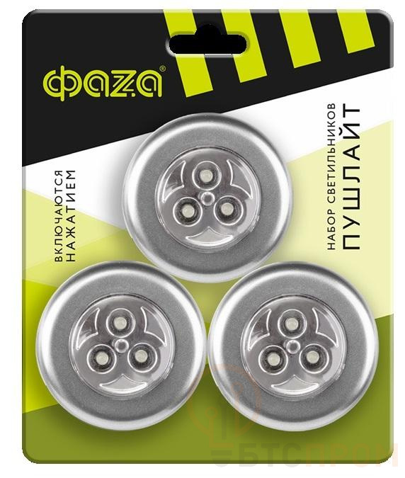 Набор светодиодных светильников TF3-3хL3-R-sr кругл. 15лм (3хAAA не в компл.) IP20 серебр. (3шт в блистере) ФАZА 5041745