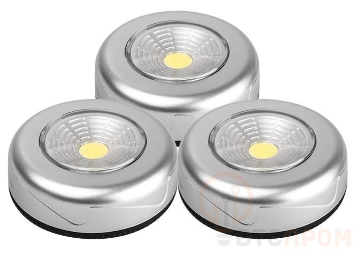 Светильник светодиодный TF3-3xL1W-sr пушлайт 1Вт COB 7500К IP20 50лм 3хAAA (не в компл.) серебр. (уп.3шт) ФАZА 5033702