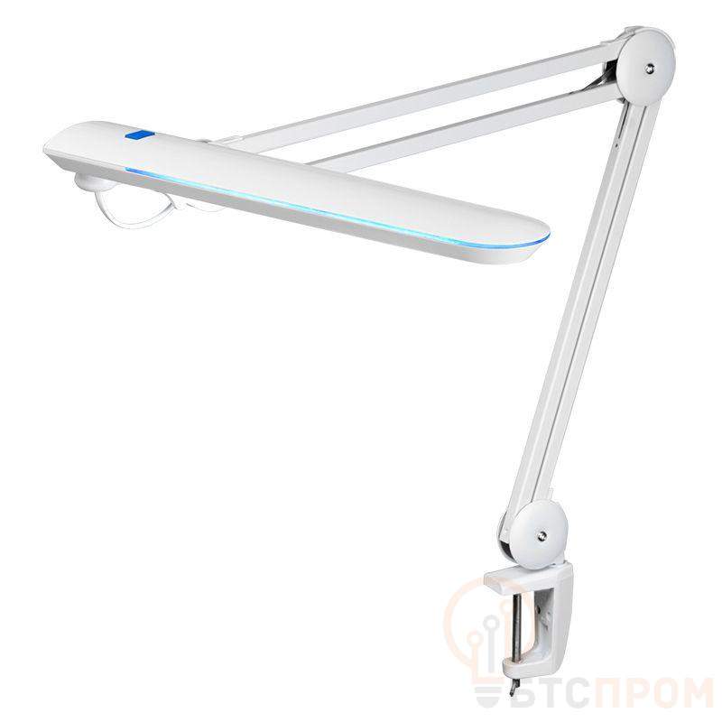 Лампа настольная на струбцине, 60 SMD LED, белая. Применяется в качестве дополнительного источника освещения. При помощи такого устройства можно с удобством прочитать текст, рассмотреть мелкие детали картин, структуру тканей, ювелирные изделия и т.д. Лампа может быть использована для организации работы в темное время суток. Изделие оснащено множеством рычагов и механизмов для точной фиксации в любом положении. Устройство оборудовано кнопкой вкл/выкл. 60 SMD светодиодов (LED) обеспечивают ярое свечение. Диоды стабилизированы, что обеспечивает мгновенное включение и выключение лампы. Прибор крепится на любую плоскую горизонтальную поверхность с помощью струбцинного зажима. Благодаря лаконичному приятному дизайну устройство станет стильным дополнением рабочего пространства.