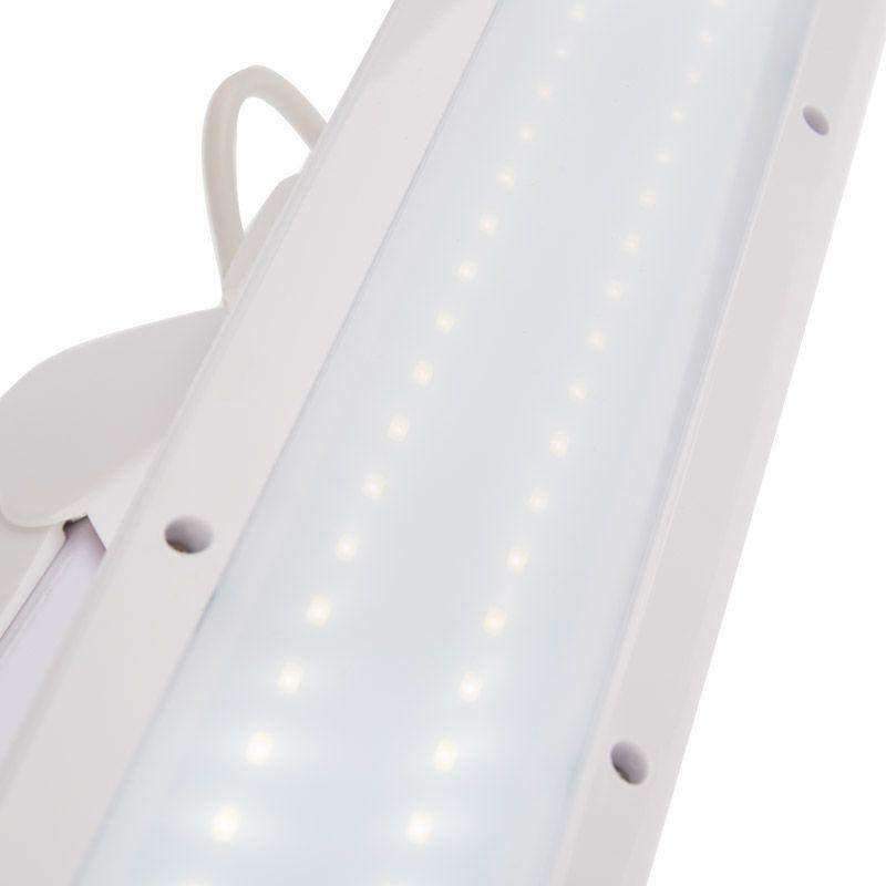 Лампа настольная на струбцине, 84 LED, с регулировкой яркости, белая. Применяется в качестве дополнительного источника освещения рабочего места в офисе или дома. Лампа может быть использована для организации работы в темное время суток. Изделие оснащено механизмами, которые обеспечивают точную и надежную фиксацию в любом удобном для Вас положении. Диоды лампы стабилизированы, защищены от повреждений и загрязнений пластиковой крышкой. Зажав специальную кнопку, расположенную на корпусе устройства, можно увеличивать и уменьшать яркость свечения. Также предусмотрена кнопка управления количеством работающих светодиодов: первая лента, вторая лента, все светодиоды. Прибор крепится на любую плоскую горизонтальную поверхность с помощью струбцинного зажима. Благодаря лаконичному приятному дизайну устройство станет стильным дополнением Вашего рабочего пространства.