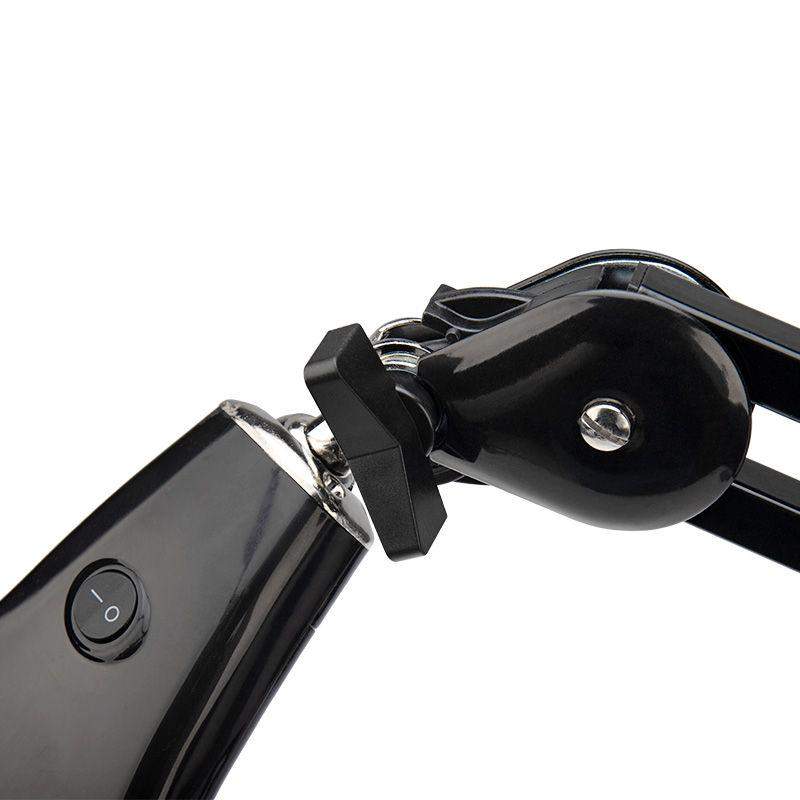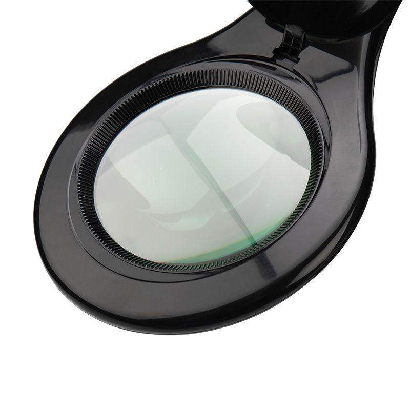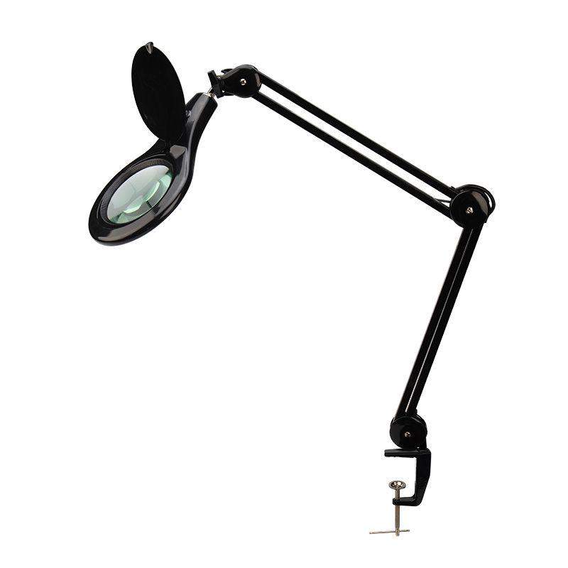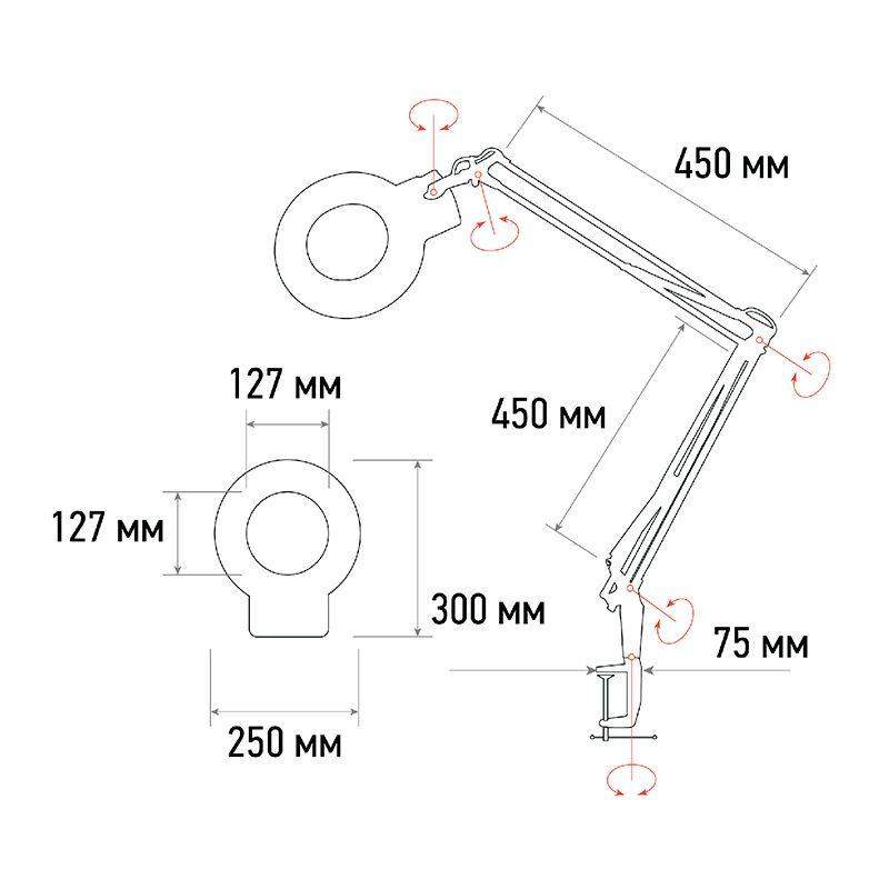 Лупа настольная REXANT предназначена для визуального увеличения различных мелких деталей или предметов. Используется во многих областях жизнедеятельности человека. Форма изделия – круглая, цвет – черный. Оптическая сила линзы – 5 диоптрий, что обеспечивает увеличение в 2,25 раза.Размер линзы: 127мм. Такое устройство станет полезным для любого специалиста, который выполняет работы, требующие высокой точности и аккуратности. Устройство имеет следующие конструктивные преимущества: стеклянная линза, бестеневая всесторонняя подсветка, модернизированный пантографический механизм, рабочий радиус регулировки 100 см, струбцинное крепление, экономичное энергопотребление, встроенный электронный блок управления, благодаря которому лампа излучает ровный свет без мерцания. 56 SMD светодиодов (LED), расположенных по кругу, обеспечивают ярое свечение.