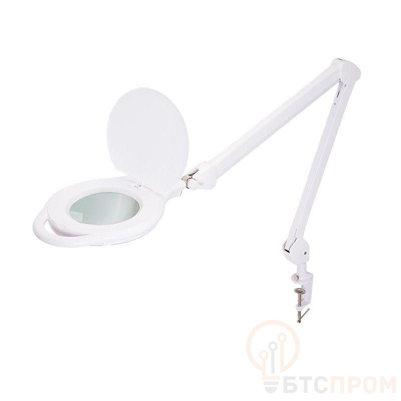 Лупа настольная REXANT предназначена для визуального увеличения различных мелких деталей или предметов. Используется во многих областях жизнедеятельности человека. Форма изделия – круглая, цвет – белый. Оптическая сила линзы – 5 диоптрий, что обеспечивает увеличение в 2,25 раза. Конструктивные преимущества: стеклянная линза размером 127мм, бестеневая всесторонняя подсветка, модернизированный пантографический механизм, рабочий радиус регулировки 100 см, струбцинное крепление, экономичное энергопотребление, встроенный электронный блок управления. На корпусе устройства располагаются кнопки включения/выключения и регулировки яркость подсветки. Удобная ручка позволяет менять позицию лампы для нахождения оптимального и комфортного рабочего положения. Устройство имеет два режима цветовой температуры: холодный белый свет (6500 К) и теплый белый свет (2700 К).