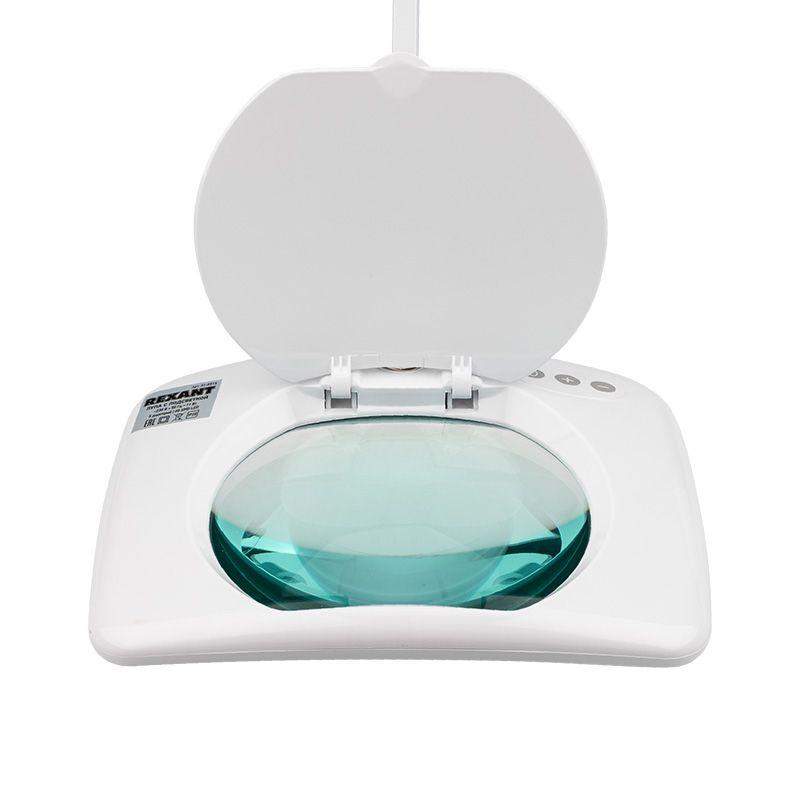 Лупа на струбцине квадратная настольная 5D с подсветкой REXANT предназначена для визуального увеличения различных мелких предметов или их фрагментов. Используется в косметологии, в тату-салонах, в биологии и медицине, в швейном и вышивальном деле, при выполнении ювелирных и радиомонтажных работ, ремонте часов, а также для организации труда людей со слабым зрением. В состав оптической системы входят: линза размером 190х157мм, пантографический механизм, подсветка. Линза, выполненная из стекла, обеспечивает четкое изображение, а пантографический механизм – устойчивость и фиксацию. Вы сможете расположить лупу так как Вам удобно: радиус регулировки 100 см. Лампа излучает ровный свет без мерцания. В рабочем состоянии потребляет 9 Вт, что экономично. Увеличенный срок службы достигается за счет использования светодиодной (LED) подсветки.