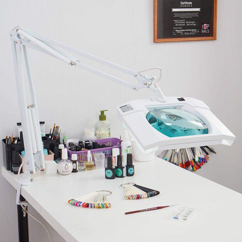 Лупа на струбцине квадратная настольная с подсветкой, белая REXANT имеет широкий спектр применения. Оптическая сила линзы – 5 диоптрий, что обеспечивает увеличение в 2,25 раза. Используется в косметологии, ногтевом сервисе, ювелирном деле и т.д. Система состоит из линзы, пантографического механизма и бестеневой подсветки. Стеклянная линза не искажает изображение. Пантографический механизм, состоящий из звеньев, обеспечивает хорошую устойчивость лупы в пространстве в необходимом положении (радиус регулировки 100 см). Бестеневая подсветка позволяет работать в условиях отсутствия внешнего освещения. В лампу встроен специальный электронный блок управления, благодаря которому лампа излучает ровный свет без мерцания. Изделие фиксируется на поверхностях с помощью удобного струбцинного крепления. Размер линзы: 150х180мм.
