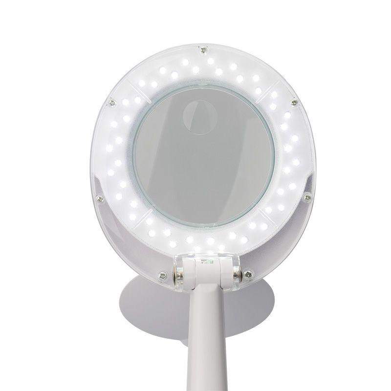 Лупа настольная REXANT предназначена для визуального увеличения различных мелких деталей или предметов. Применяется для выполнения различных работ, где необходима высокая точность и безопасность. Используется при организации труда людей со слабым зрением, а также для других работ, требующих дополнительного увеличения и подсветки рабочего поля. Форма изделия – круглая, цвет – белый. Оптическая сила линзы – 3 диоптрии, что обеспечивает увеличение в 1,75 раза. Размер линзы: 100мм. Устройство имеет следующие конструктивные преимущества: стеклянная линза, бестеневая всесторонняя подсветка, удобный эргономичный корпус, экономичное энергопотребление, встроенный электронный блок управления, ровный свет без мерцания. 30 SMD светодиодов (LED), расположенных по кругу, обеспечивают ярое свечение. Устройство оснащено откидной крышкой, которая защищает линзу от повреждений и пыли.