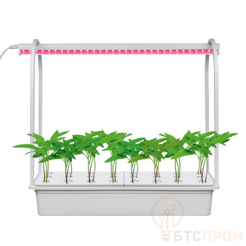 Набор для гидропоники ULT-P44B-10W/SPSB IP40 AQUA SIMPLE WHITE – современная домашняя система для самостоятельного выращивания растений без грунта. Бюджетный и компактный стартовый комплект, позволяющий быстро и без хлопот получить первый урожай. Рассчитан на начинающих и более опытных пользователей гидропоники. В набор входят: подставка с поддоном под растения, рассчитанная на 24 саженца, светодиодный светильник для растений ULI-P20-10W/SPSB, комплект крепежа и инструкция. Светильник для растений из комплекта имеет сине-красный спектр SPSB, который предназначен для досвечивания для ускорения роста рассады и стимулирования цветения. Мощность фитосветильника составляет 10 Вт, класс энергосбережения А+, длина сетевого провода – 1,2 м. Набор легкий и простой в сборке. Срок службы светильника 30000 часов. Габариты собранного устройства - 540х220х540 мм, емкость – 540х220х90 мм. Размер упаковки - ДхШхВ 580х240х100 мм Общий вес комплекта 1,55 кг. Гарантия от производителя 18 месяцев.