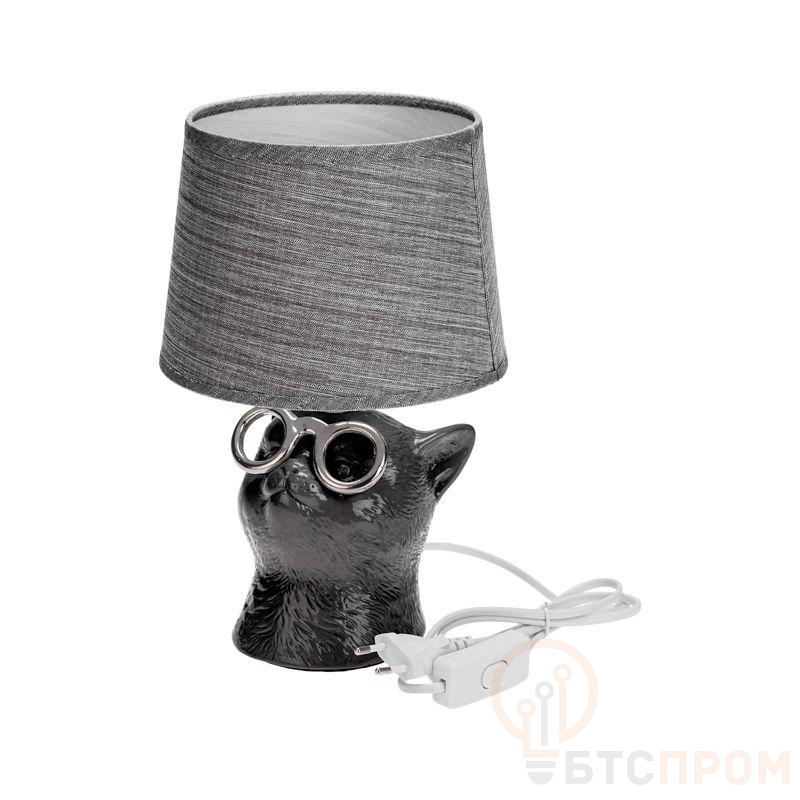 Декоративный настольный светильник представляет собой современное дизайнерское решение, которое не только обеспечивает качественное освещение, но и служит оригинальным украшением интерьера. Светильник подходит для размещения в спальнях гостиных, коридорах и других помещениях, где хочется добавить веселого и нестандартного декора. При производстве изделия используются такие материалы как керамика, текстиль и металл. Светильник с патроном Е14 совместим с лампами накаливания до 40 Вт, а также с энергосберегающими и светодиодными лампами. Работает от стандартной сети 220 В и не требует дополнительных элементов питания. Светильник черного глянцевого цвета в форме кота в очках станет стильным дополнением интерьера и поднимет настроение своим ярким и необычным дизайном.