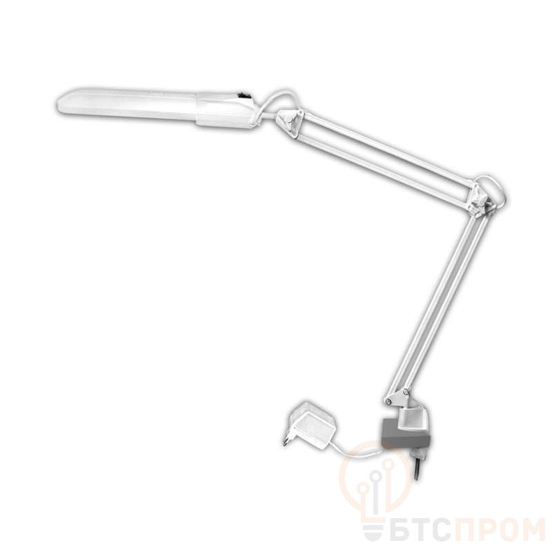 Светильник Дельта 1 настол. на струбцине с дросселем 11Вт с лампой КЛЛ G23 бел. Трансвит – осветительный прибор. Представляет собой настольный осветительный прибор с овальным плафоном вытянутой формы и струбциной, из пластика, белого цвета. С гибкой штангой и регулируемым углом наклона плафона. Фиксируется на поверхность толщиной не более 60 мм или к стене с помощью трех винтов. Комплектуется люминесцентной лампой с цоколем G23. Поставщик: АО "Трансвит".