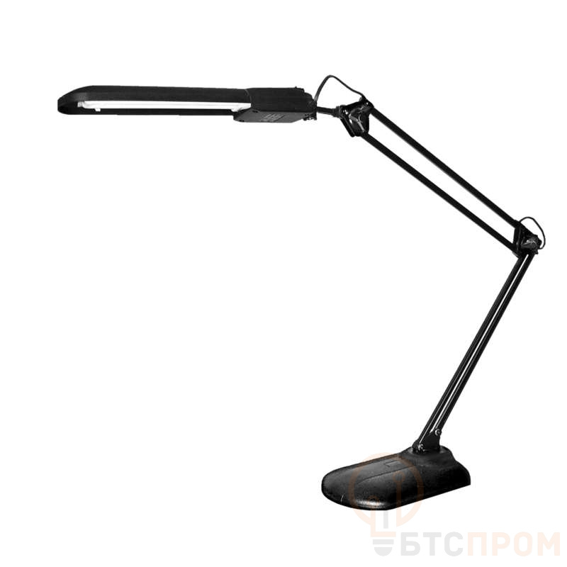 Светильник Дельта + настол. на подставке с АПП 11Вт с лампой КЛЛ 2G7 на подставке черн. Трансвит – осветительный прибор. Представляет собой настольный осветительный прибор с овальным плафоном вытянутой формы и полукруглой подставкой, из пластика, черного цвета. С гибкой штангой и регулируемым углом наклона плафона. Комплектуется люминесцентной лампой с цоколем 2G7. Поставщик: АО "Трансвит".