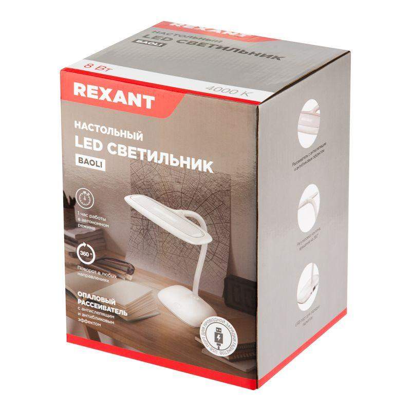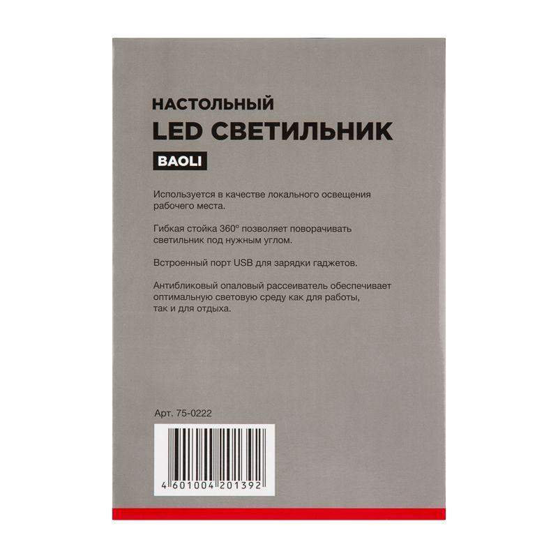 Светильник настольный Baoli с портом USB для зарядки гаджетов вращение 360град. Rexant 75-0222 фото в каталоге от BTSprom.by