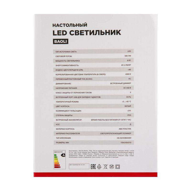 –Светильник настольный Baoli с портом USB для зарядки гаджетов вращение 360град. Rexant 75-0222