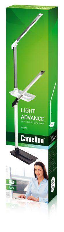 Стильный дизайн светильника Camelion KD-846 украсит интерьер, оформленный в любом стиле. Плафон и стойка светильника изготовлены из алюминия, а основание -из прочного ABS-пластика. При транспортировке и хранении светильник может быть компактно сложен. Тип установки светильника : на основание. После установки светильника на стол возможно регулировать наклон стойки и наклон плафона. Источник света – светодиоды 2-х температур свечения интегрированные в плафон светильника, позволяющие иметь 3 режима цветовой температуры (3000, 4500, 6000 К). Применение разных цветовых температур свечения позволяет создать комфортную атмосферу для работы, учебы или отдыха. Три ступени регулировки яркости. Мощность- 8 Вт. Максимальный световой поток 400 лм. На основании светильника расположена одна сенсорная кнопка управления светом: вкл/выкл, плавное изменение яркости, изменение цветовой температуры. Регулируемая функция будет зависеть от способа воздействия на кнопку- кратковременное или длительное нажатие.