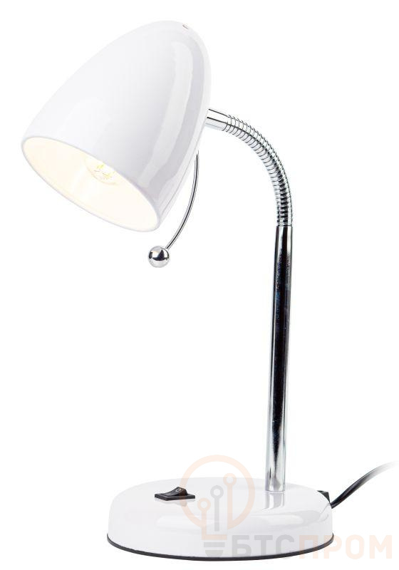 Настольный светильник ЭРА N-116-Е27-40W-W с цоколем Е27 компактного размера для удобного размещения на столе. Может использоваться с лампой накаливания, компактной люминесцентной лампой (КЛЛ) или светодиодной (LED) лампой. У светильника металлические стойка и плафон, выключатель на основании. Высота расположения плафона регулируется сгибающейся стойкой, направление света - наклоном и поворотом плафона в любом направлении.