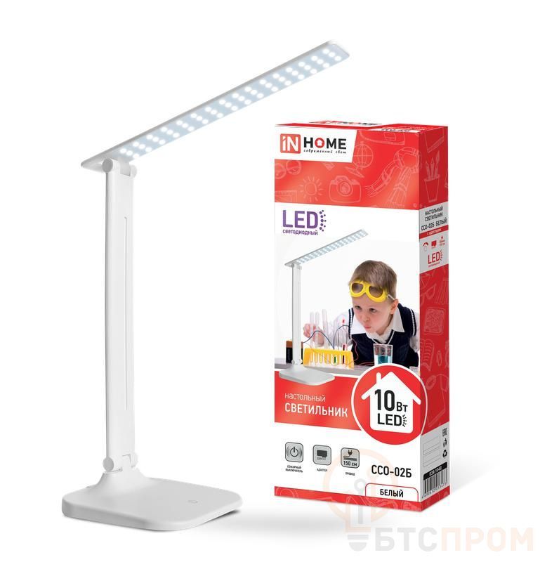 Светильник светодиодный настольный ССО 02Б 10Вт 4000К 625лм сенсор-диммер адаптер бел. IN HOME 4690612013473