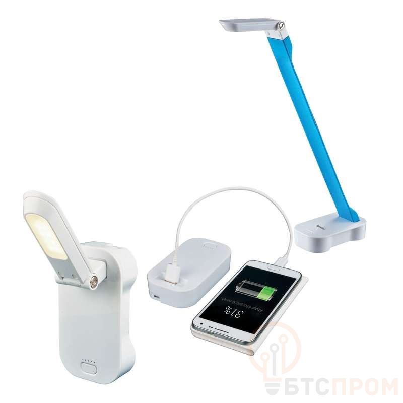 Светильник настольный трансформируемый TLD-530 Blue-White/LED/200Lm/6400K/PB механический выкл. встроен. аккум. Power bank для зарядки портативных электрон. устройств син. с бел. Uniel UL-00000795