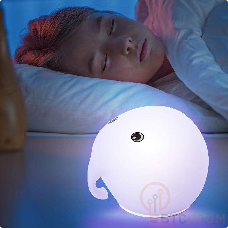 Светодиодный мягкий ночник ЭРА NLED-418-2W-W Слоник работает от встроенного литиевого аккумулятора и подзаряжается от USB, кабель для подзарядки в комплекте. Есть выключатель для отключения ночника и блокировки сенсора от случайного срабатывания, чтобы ночник не включился при перевозке или хранении. У Слоника 5 режимов работы: белый, красный, зеленый или синий цвет свечения на выбор, а также смена разных цветов. Мягкие светильники-ночники ЭРА из силикона с приятным на ощупь покрытием софт-тач имеют милый дизайн в виде фигурок животных и популярны как среди детей, так и среди взрослых. Режим плавной смены цветов завораживает, оказывает успокаивающий эффект, помогает бороться со стрессом и быстро засыпать. На эти светильники радостно смотреть, их приятно держать в руках. Они трогательные во всех смыслах - речь и о необычном оформлении корпуса, и о сенсорном способе управления. Пара прикосновений или легкое постукивание - и вот ночник уже изменил цвет свечения или режим работы.