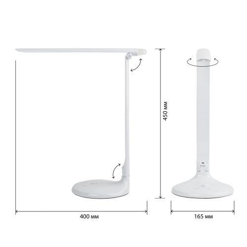 Настольный светильник ЭРА NLED-482-10W-W - удобная складная модель с сенсорным управлением, с тремя уровнями яркости и светодиодным ночником в верхней части плафона. Светит холодным белым светом, который бодрит и повышает работоспособность. Ночник в верхней части плафона имеет отдельный сенсорный выключатель на основании.