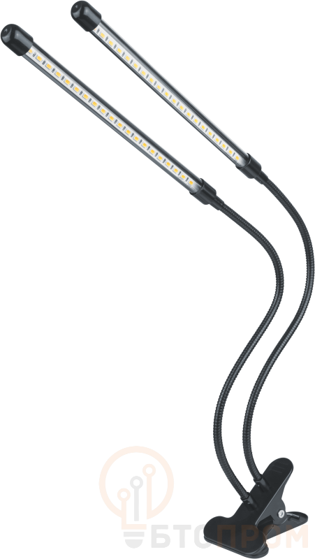 Корпус выполнен из алюминия, что обеспечивает эффективный отвод тепла и долгий срок службы светодиодов. Светильник оснащен удобным креплением и гибкими поворотными кронштейнами для точной настройки направления светового потока. Основная сфера применения — подсветка рассады, комнатных растений, стеллажных систем и небольших теплиц в условиях недостаточного естественного освещения.