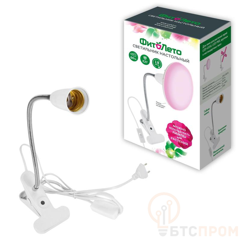 Светильник TLI-280 WHITE E27 PLANT настольный для фитоламп на прищепке цоколь E27 бел. Uniel UL-00009078