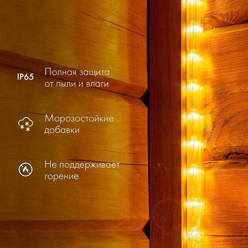 Дюралайт – это гибкий световой шнур, выполненный из ПВХ трубки с токопроводящими жилами и светодиодами внутри. Применяется для декоративной и контурной подсветки различных объектов. Также используется при изготовлении каркасных фигур и консолей. Дюралайт работает в режиме постоянного свечения. Для подключения дюралайта в комплекте поставляется блок питания. При соединении дюралайта с разъемом (муфтой) необходимо заизолировать свободное воздушное пространство разъема (муфты) морозостойким силиконовым герметиком, предотвращающим попадание влаги. Сверху данного соединения необходимо использовать термоусаживаемую трубку с клеевым слоем. Дюралайт поставляется в бухте длиной 100 м. Следуя несложной инструкции, пользователь может легко отрезать и подключить отрезок дюралайта необходимой длины. Модуль резки составляет 2 м. Для подключения каждого дополнительного отрезка дюралайта понадобится дополнительный блок питания, который приобретается отдельно (арт. 124-021-3).