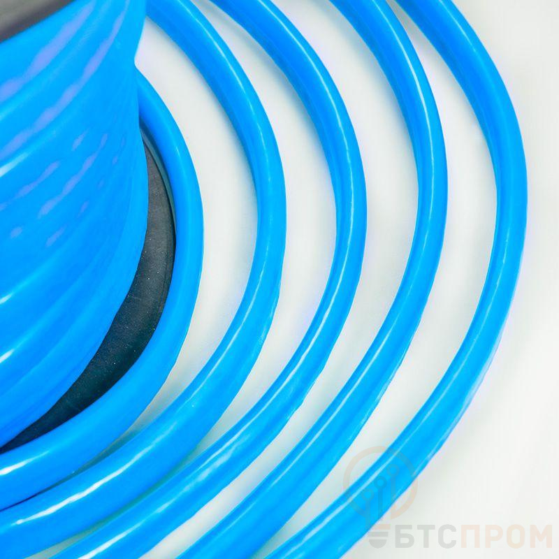Гибкий неон - световой шнур выполненный из матовой синей ПВХ трубки с токопроводящими жилами и светодиодами внутри. Используется для декоративной и архитектурной подсветки объектов, так же широко распространён в украшении интерьера. Шнур имеет два токопроводящих провода внутри и используется в режиме постоянного свечения. Гибкий неон поставляется в бухтах длиной 50 м, имеет модуль резки 0,914 метра. Следуя несложной инструкции легко можно отрезать и подключить гибкий неон нужной длины. Температурный диапазон использования от -45 до +35 оС, монтаж необходимо производить при температуре -25 до +35 оС. Допустимый диаметр изгиба составляет 2 см. При подключении гибкого неона к соединительному разъему (муфте) необходимо заизолировать свободное воздушное пространство соединительного разъема (муфты) морозостойким силиконовым герметиком, предотвращающим попадание влаги. Сверху данного соединения необходимо использовать термоусаживаемую трубку.