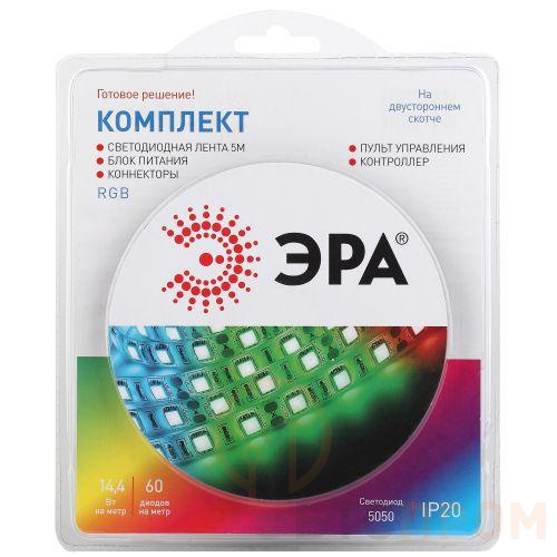 Комплект светодиодной ленты 5050kit-14.4-60-12-IP20-RGB разноцвет. 12В (в комплекте: LED лента на двустороннем скотче; источник питания; контроллер; пульт управления; коннекторы) (уп.5м) Эра Б0043067