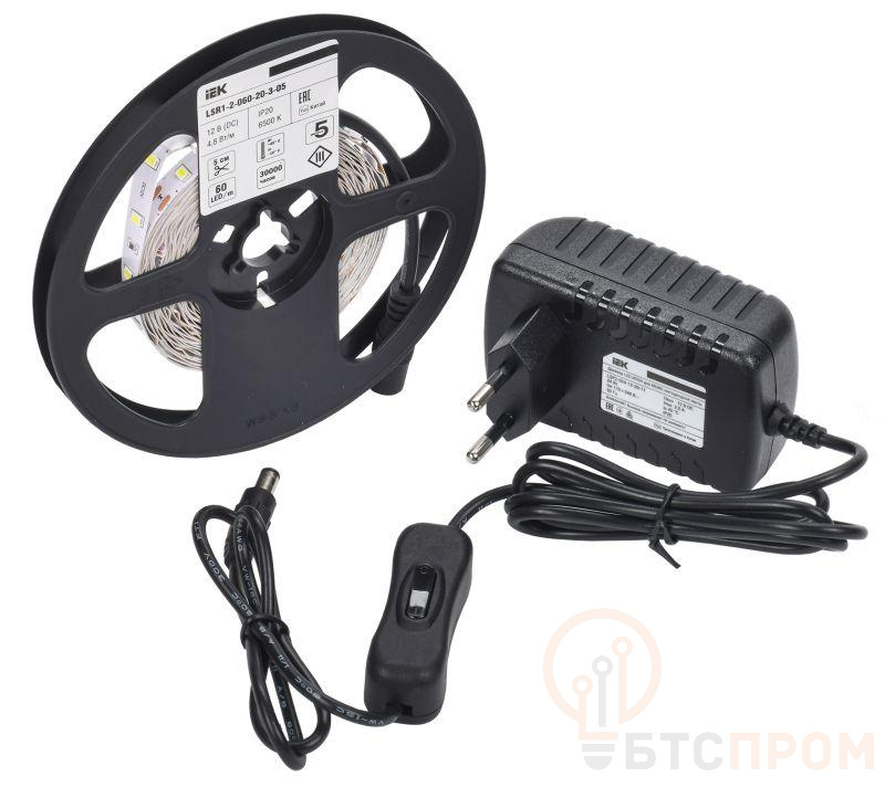 Комплект светодиодной подсветки "Сделай сам" DIY (лента LED 5м LSR-2835W60-4.8-IP20-12В + драйвер + выключатель) IEK 2LSR1-2-060-20-1-05-S1