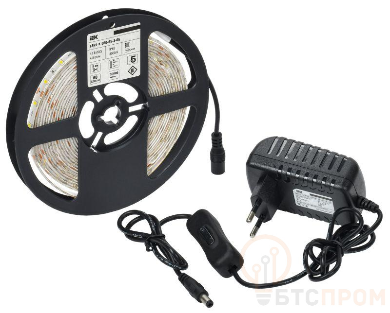 Комплект светодиодной подсветки "Сделай сам" DIY (лента LED 5м LSR-2835WW60-4.8-IP65-12В + драйвер + выключатель) IEK LSR1-1-060-65-1-05-S1
